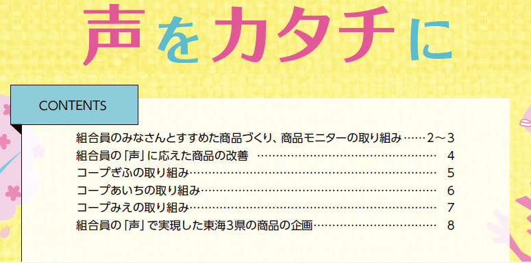 東海3生協の組合員のみなさんとすすめた商品づくりや商品改善、商品確かめ活動など、商品を中心としたコミュニケーション事例等を紹介しています。
